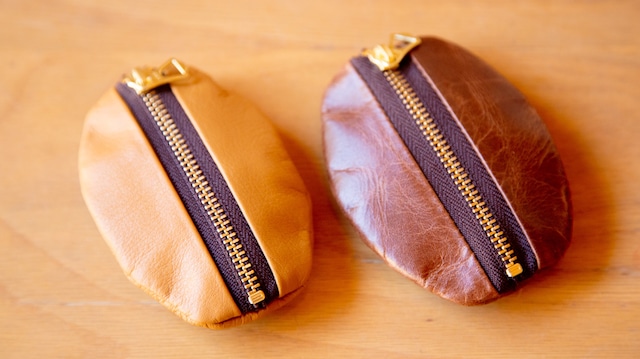 ブラウン「珈琲 × 革職人」 愛くるしいコーヒー豆の形を忠実に再現したコインケースが 瀬戸内にある因島の腕利きの職人さんと 輪怐さんの協力で完成しました。 すっぽり手に入るちょうどいいサイズ感と いつまでも触っていたくなる 柔らかい素材感(牛革)にこだわりました。 ボールチェーン付きで キーケースとしてもご利用いただけます。 コーヒー好きなら、一つは持っていたい「豆」 ご自分用はもちろん、プレゼントにもオススメです。 本体:牛革 軽くて柔らかい革。ムラ感のある染料仕上げが特徴。